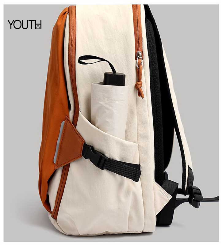 1.Body Material: This backpack is made with contrast color light water resistant nylon fabric.Designed for ladys’s laptop backpack for travelling.