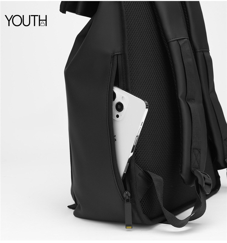 4. With outer USB cable connector.On side we make the password lock to keep your backpack safe.