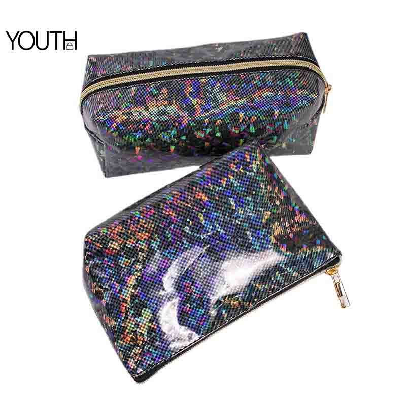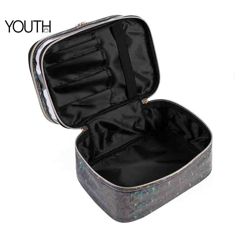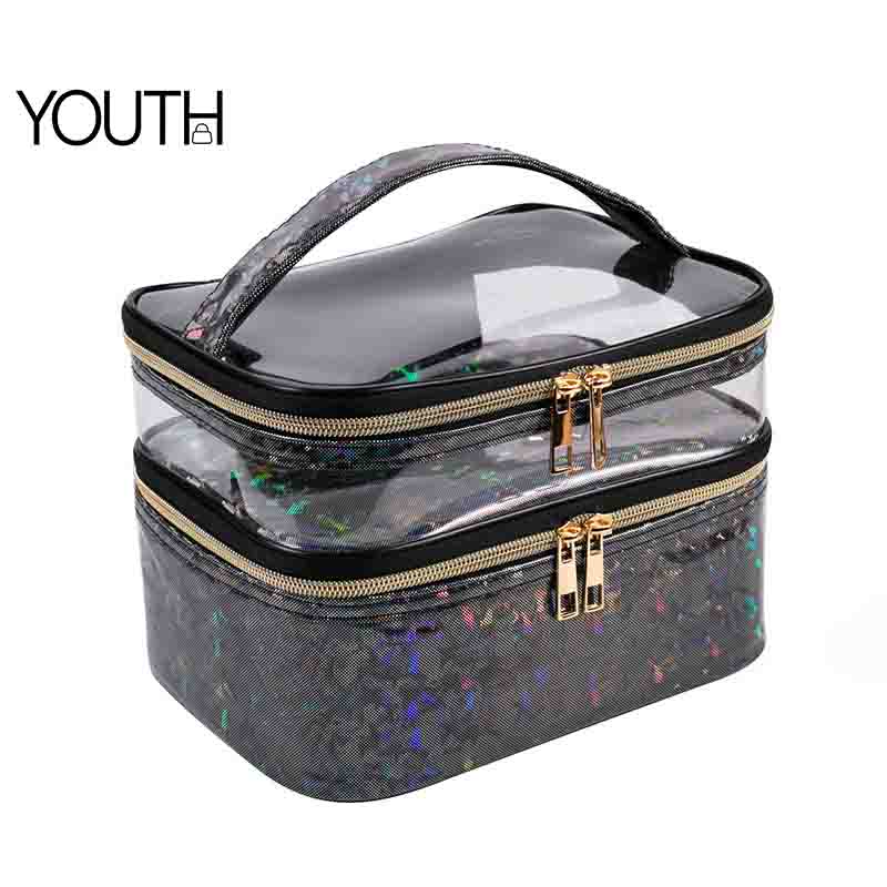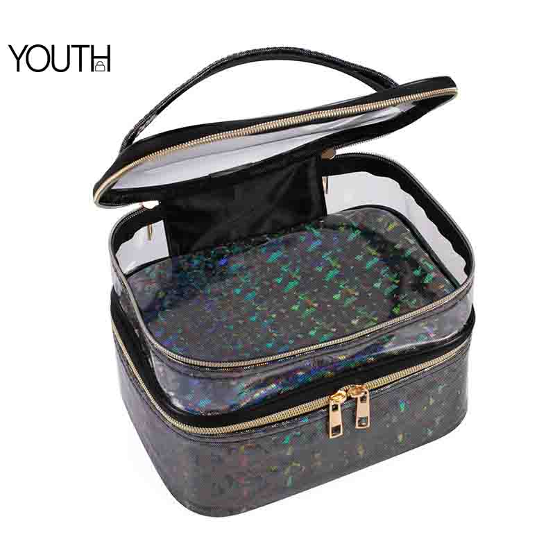 1.Body Material: This cosmetic bag is made with rediant PVC material.